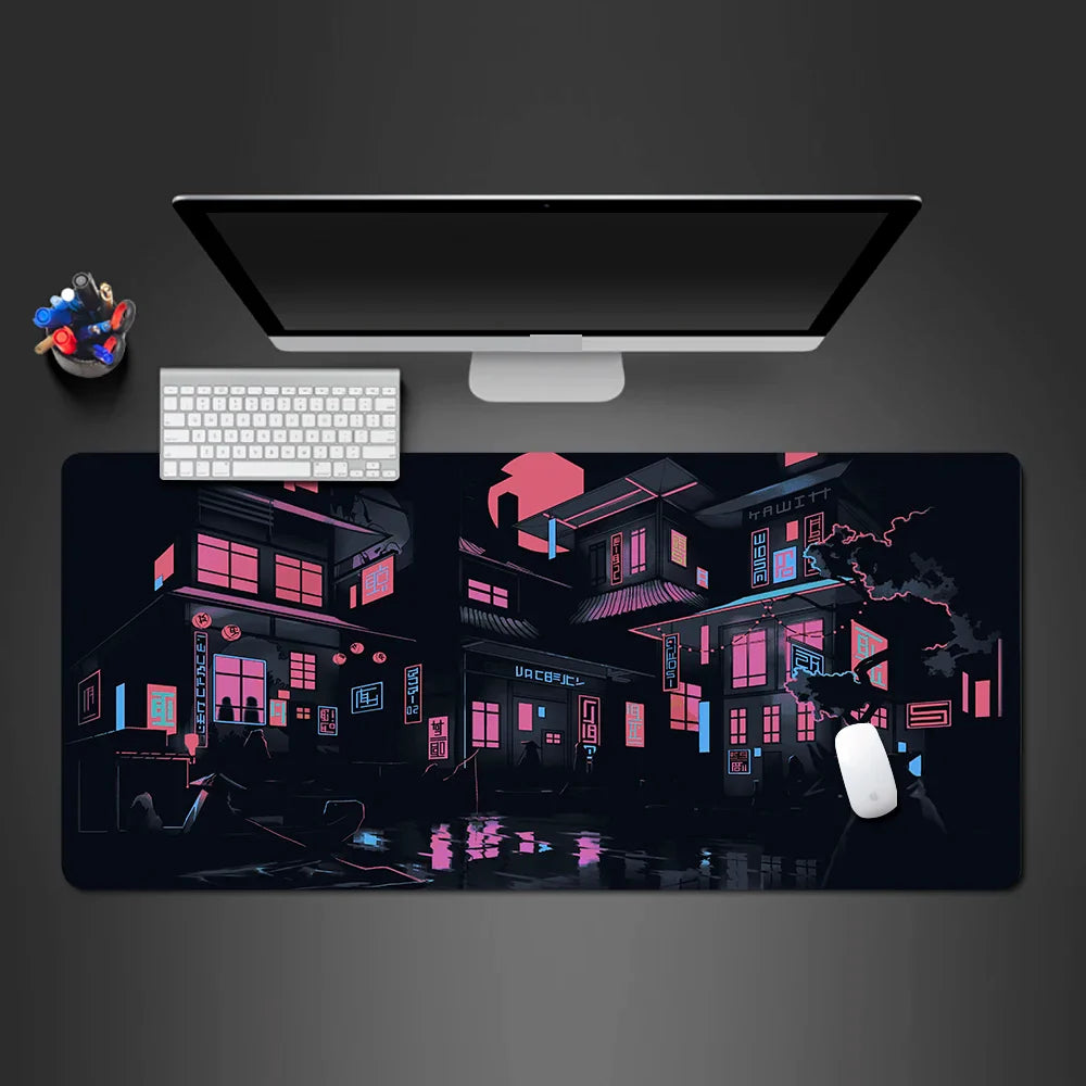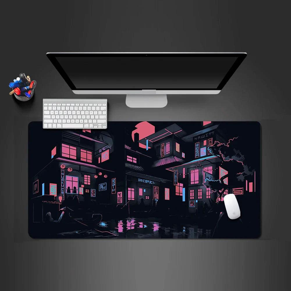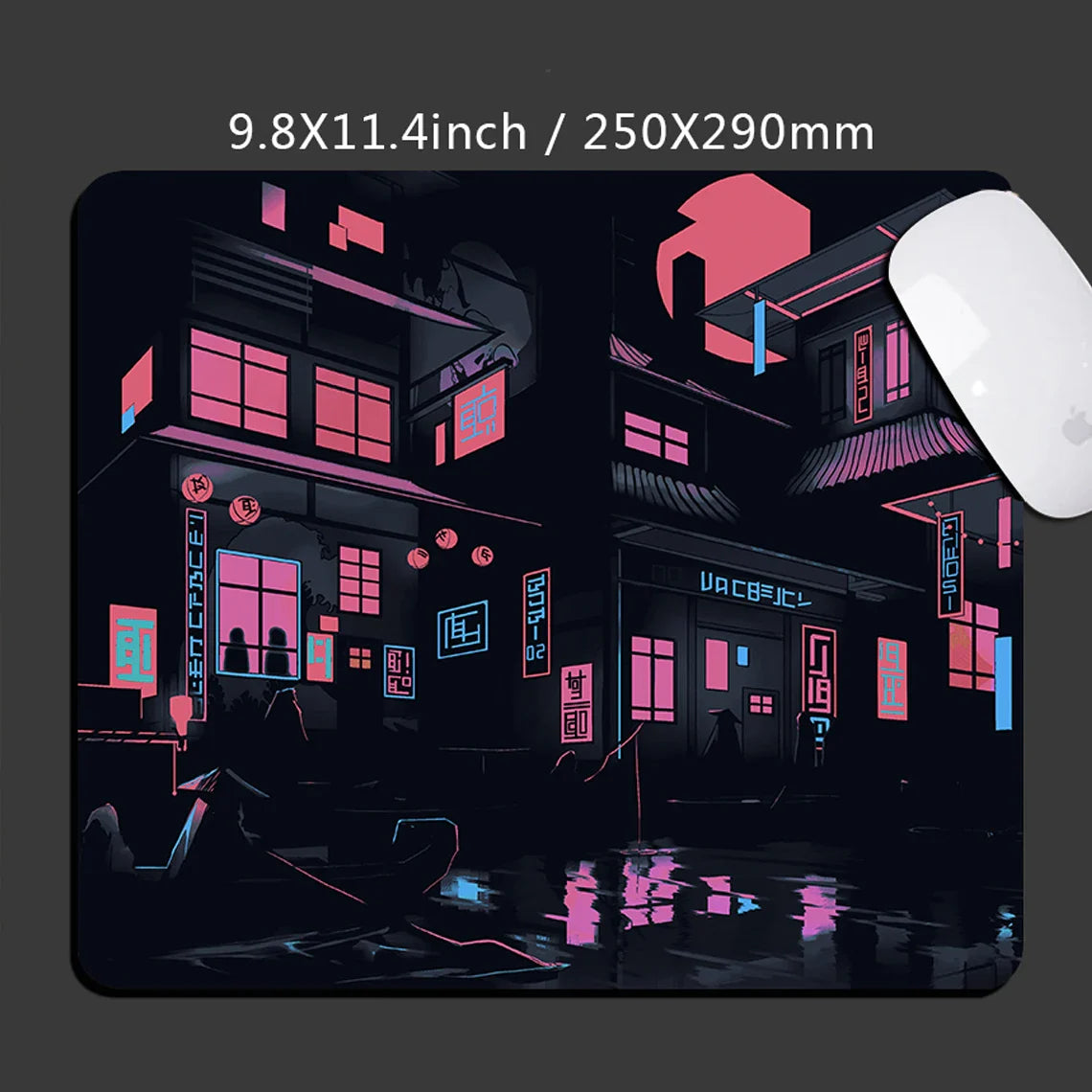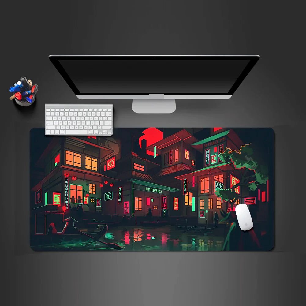 Experience the allure of Japan after dark with the Japanese Night Mouse Pad. This desk mat brings a slice of Japanese nightlife right to your workspace, complete with neon-lit buildings and reflective water puddles. The rubber and cloth construction offers a perfect balance of comfort and practicality for gamers and professionals alike.