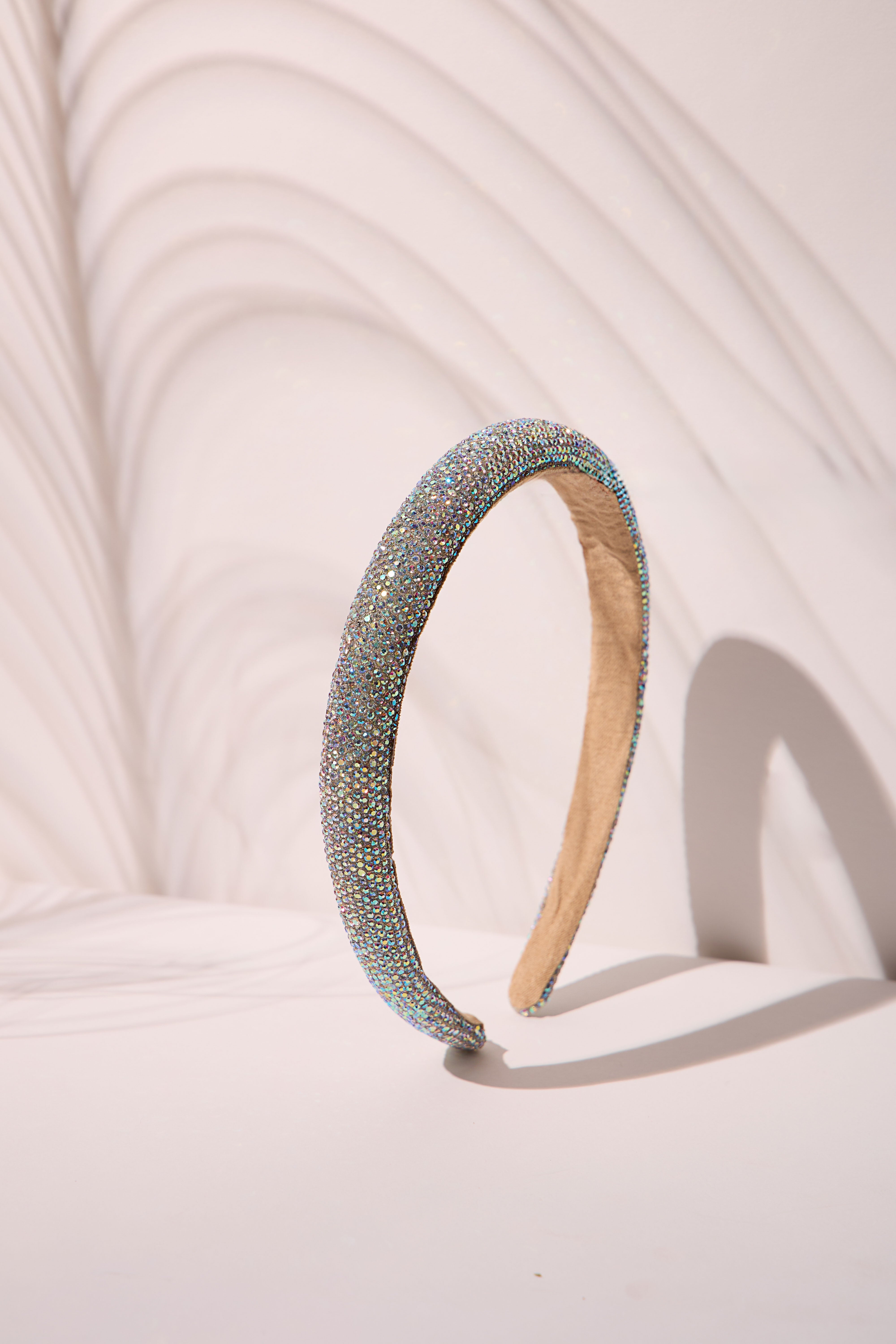 Stunning headband with sparkling rhinestones for a glamorous finish.